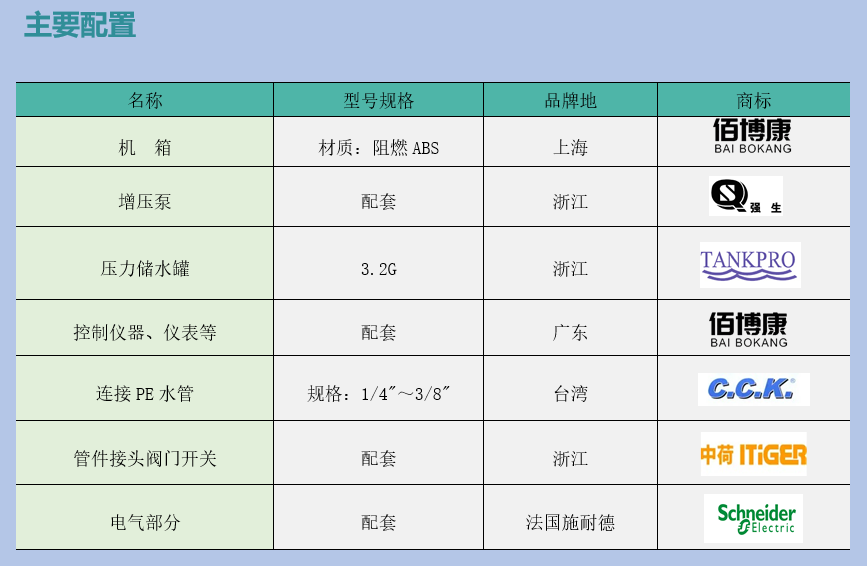 l 纯水管路、接头均获NSF认证。均采用高端品牌PE水管和快速接头;