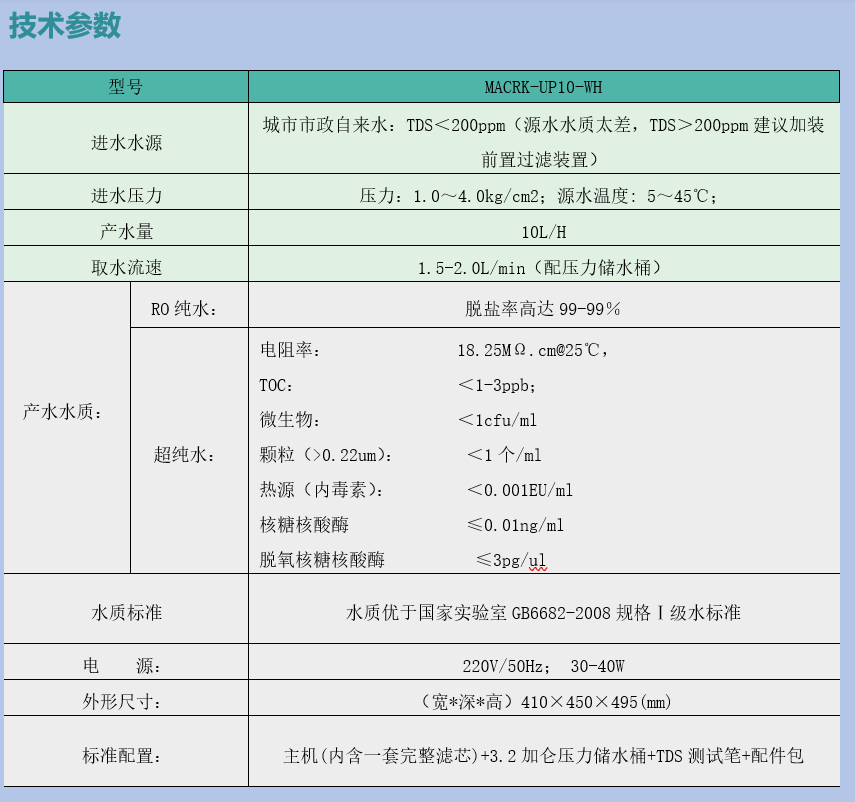 l 采用双层醋酸纤维素膜0.45+0.2um终端过滤器,有效去除特定污染物,如去除内毒素和核酸酶、超痕量有机物、内分泌干扰素EDS、挥发性有机物VOC等,以满足不同的实验要求;