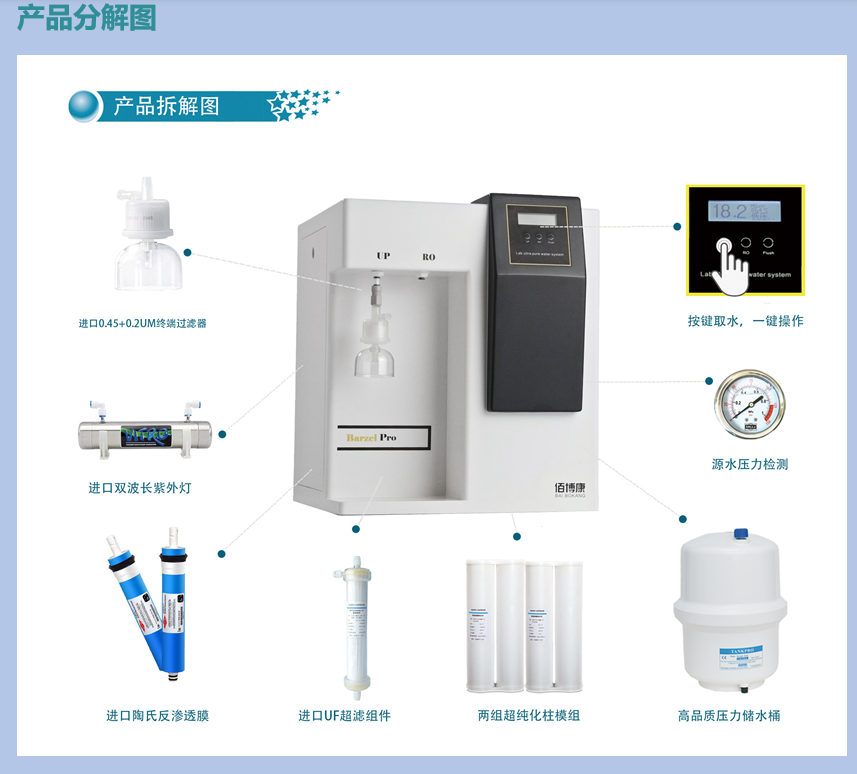 l 以自来水为水源,直接生产纯水和超纯水的一体化系统;
