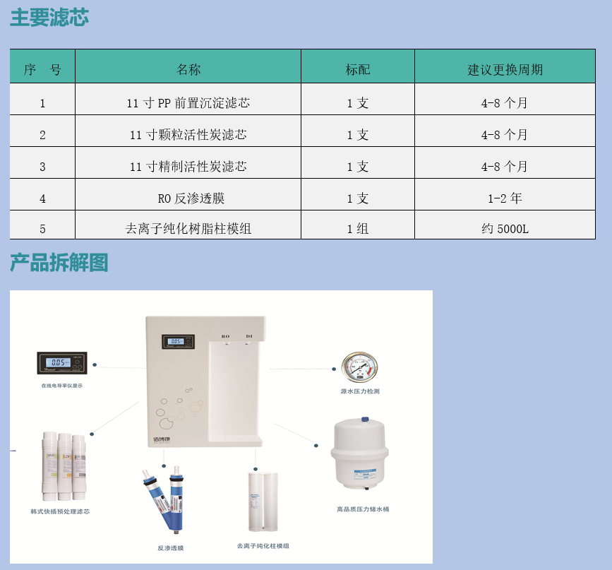 l 配备便携式TDS笔,可随时随地测试TDS含量。